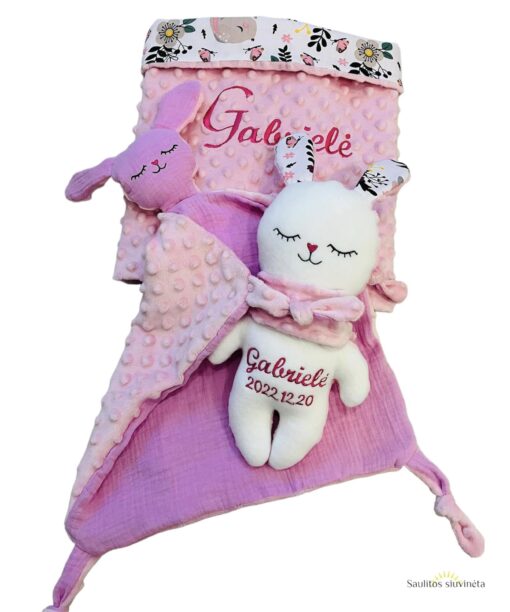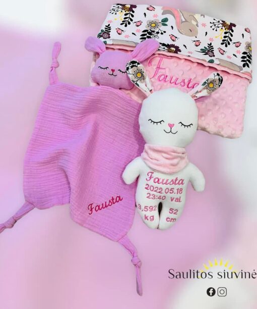 Zuikio, rankšluosčio ir krepšelio rinkinys ,,Zuikė balerina”