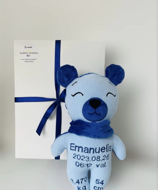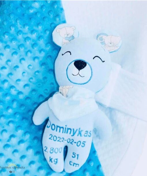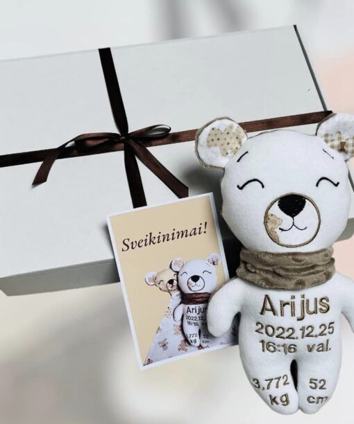 Minkštas pliušinis žaislas su vardu ar kitu norimu tekstu. Įamžinkite vaiko metrikus, kurie primins, koks mažytis jis gimė. Prisiminimas visam gyvenimui!